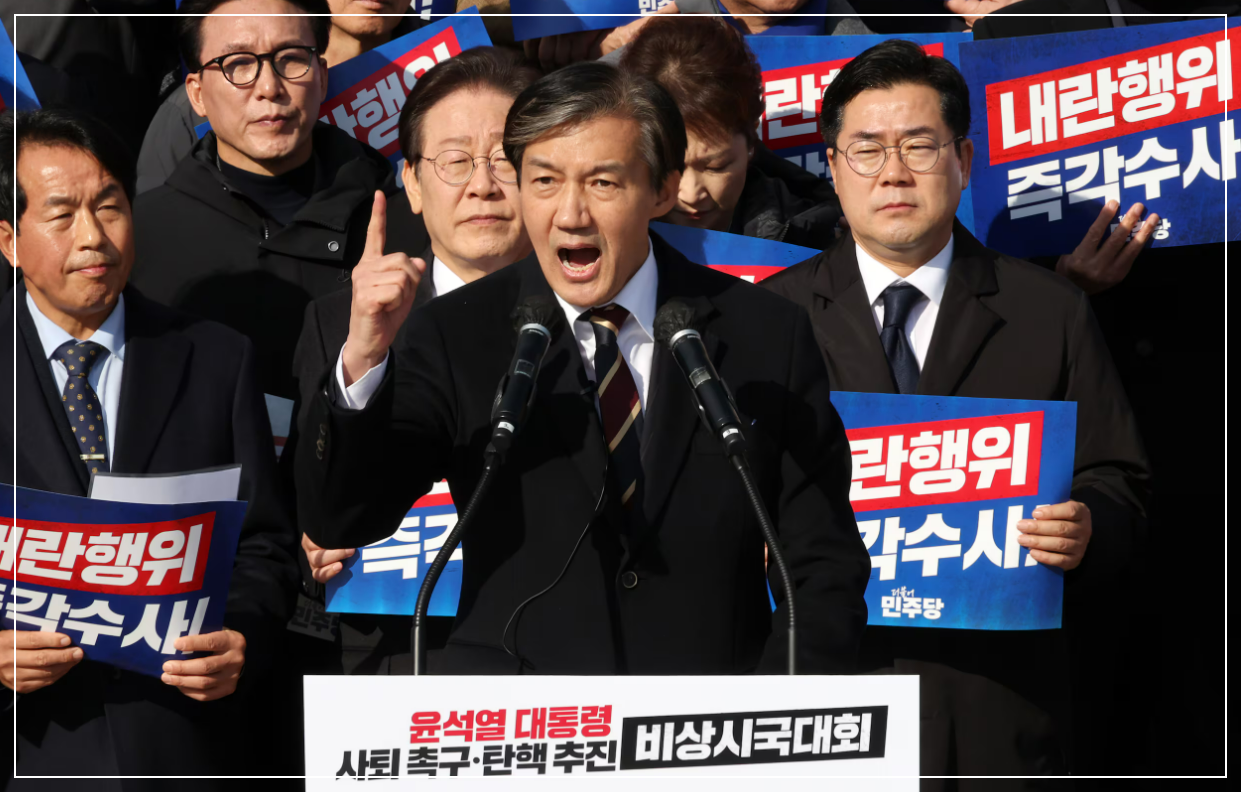 야당은 윤석열 대통령이 2024년 12월 3일 비상계엄을 선포하면서 헌법이 요구하는 어떠한 요건도 충족하지 못했다고 지적했습니다.