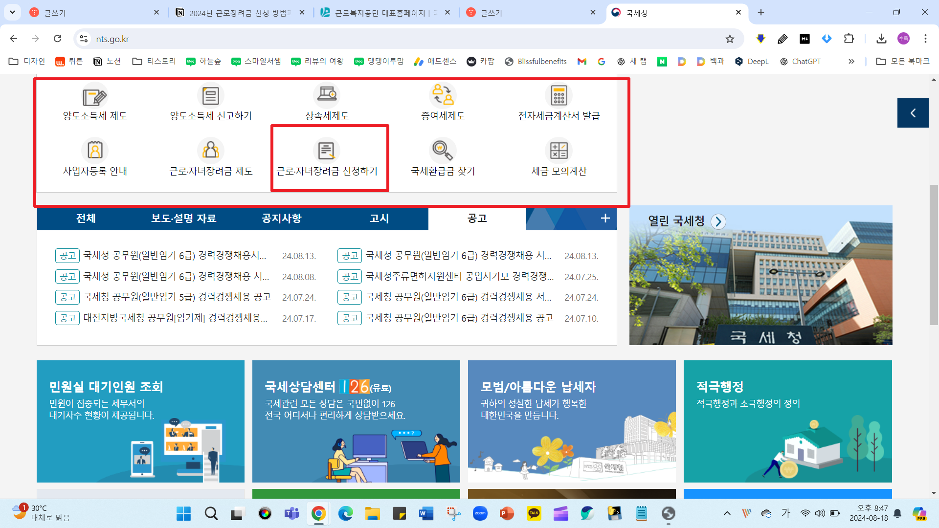- 근로장려금 신청: 근로장려금 신청하기를 선택하고, 필요한 정보를 입력합니다.