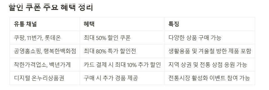 - 디지털 온누리상품권 이벤트: 상품권 구매 시 추가 경품 및 포인트 적립