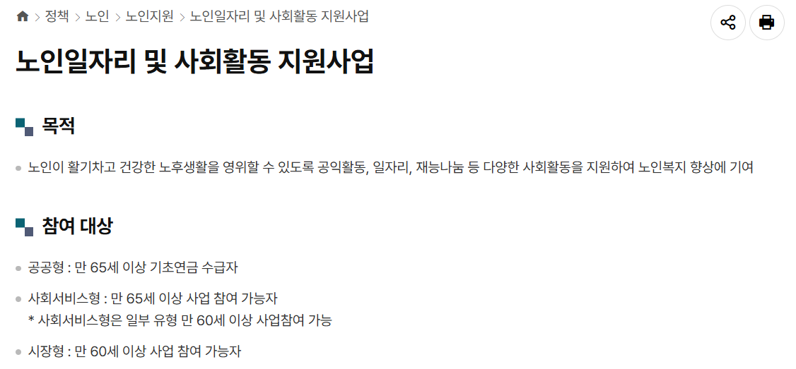 연령: 만 60세 이상(일부 사업은 만 65세 이상)