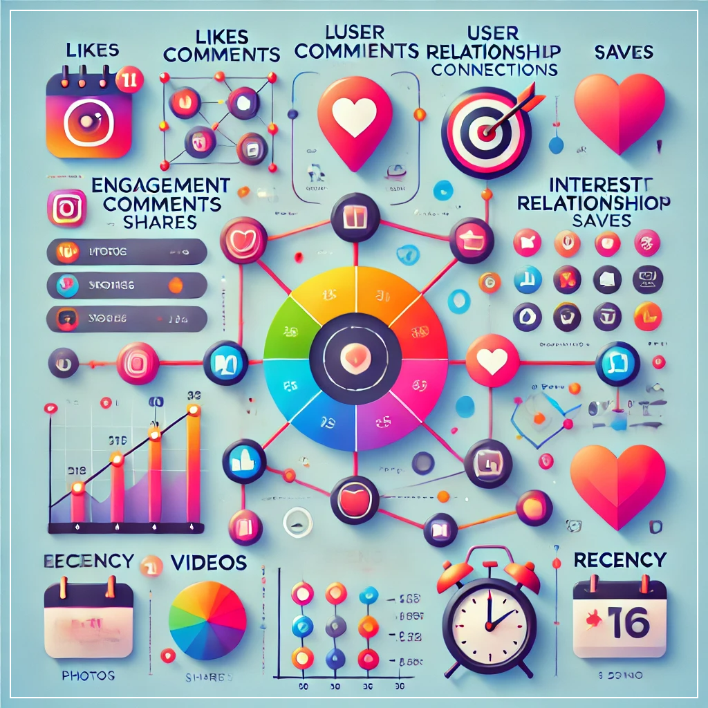 참여도(Engagement): 좋아요, 댓글, 저장 및 공유와 같은 사용자의 활동이 중요한 지표로 작용합니다.