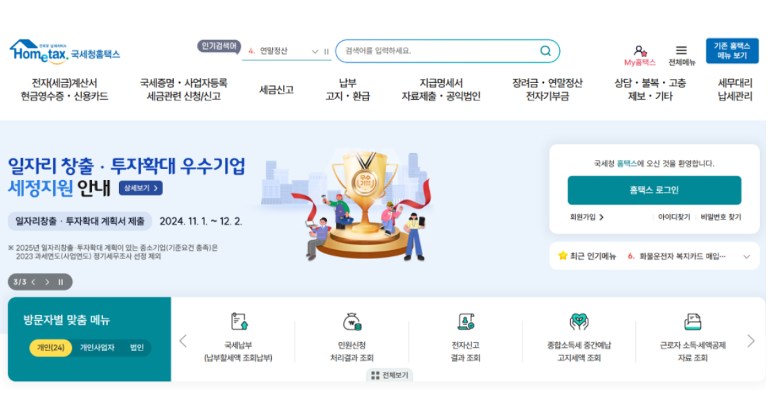 홈택스: 공인인증서를 통해 로그인해야 하며, 예상 공제액 확인이 가능합니다.